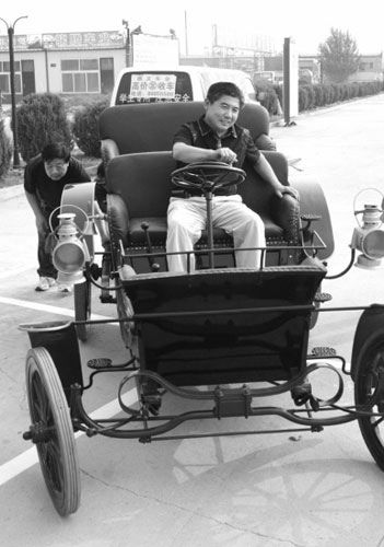 劉先生向記者介紹,這次博覽會展出的這臺車是復(fù)制品,真車是國家一級保護文物,停在北京頤和園內(nèi)。真車是無價之寶,而這輛車也是他好不容易得來的,但他拒絕透露此車的來源,也不愿意表露是否愿意出賣。