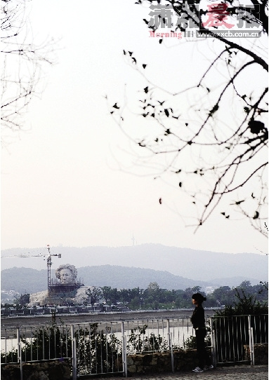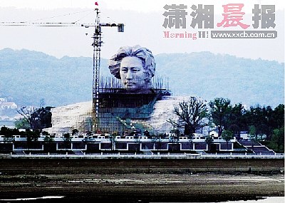 “哎,你們看,多英俊呀,多帥氣呀,青年時代的毛主席!”家住湖南第一師范附近的黃巖明先生,昨日打開窗戶便看見矗立在橘子洲頭的青年毛澤東藝術(shù)雕塑,他趕忙攜左鄰右舍到湘江風(fēng)光帶來個先睹為快。而令他意想不到的是,盡管高高的塔吊還陪伴著藝術(shù)雕塑一動也不動,盡管藝術(shù)雕塑面部以下的腳手架還沒全部拆除,但橘子洲頭和湘江兩岸已經(jīng)聚集著上萬名長沙市民駐足觀看了。