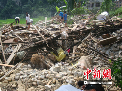 中新網(wǎng)河池8月4日電 (羅開革 王剛)廣西河池市鳳山縣公安局4日上午透露,該縣3日發(fā)生大面積山體滑坡事故,上萬立方的泥土和石頭摧毀了5間民房。所幸房內(nèi)人員及時(shí)逃生,沒有造成人員傷亡。