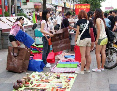 4日下午6時許,在海南師范大學金鵬學生公寓樓門外,記者遇見幾個大三學生攤主正在忙碌著將百貨小攤一字排開,休閑服裝、精美飾品、各類書籍等物品不一會就被他們整齊地擺放到了地攤上。藝術系的大三女生小李告訴記者,上周回校報到以后,她就跟幾個同學一起商量好了,各自從生活費里拿出500元錢,從得勝沙服裝批發商場購進了一些棉被、床單、服飾等,今天是他們第一天擺攤!叭ツ觊_學期間就有同學看好了新生入學時做生意的時機,聽說盡管利潤不高,但還是有錢賺的,所以我也想做著試試!毙±钚χ鴮τ浾哒f,和他一起擺地攤的很多校友幾天前紛紛前往學校周邊的各個超市里打探過行情,他們賣的商品幾乎都比店鋪要便宜2元-5元,“雖然賺不了多少錢,但我們也想嘗試一下做薄利多銷的生意,至少可以體驗一下自己當老板做生意的樂趣!