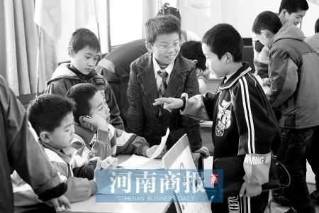 昨日上午,鄭州市中原區(qū)伏牛路第四小學組織了一場模擬“小小招聘會”,小學生特意穿上爸爸的西裝打上領(lǐng)帶,尋找理想崗位。
