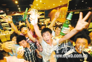 昨下午6點剛過,主城各區繁華路段,處處可見考生們聚會歡慶場面。