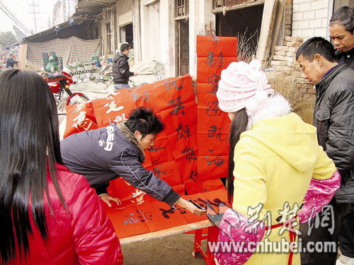 昨日上午,成家良開始擺攤賣春聯(lián),不一會(huì)兒就引來了不少圍觀的人。一名小伙子花了10元錢買下一副火星文春聯(lián),他說,成家良賣的是非主流春聯(lián),夠創(chuàng)意,但“不知道家里人能不能接受”。也有圍觀的老人不贊同成家良的創(chuàng)意:“他對(duì)書法的精髓還沒有完全掌握好,就想著去創(chuàng)新,未免太心急了。”