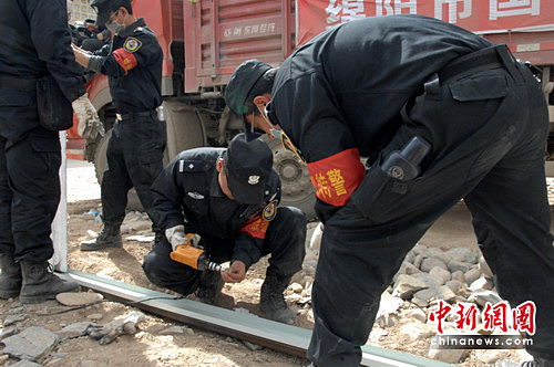 中新網(wǎng)成都4月19日電 (陳鳳丹)19日下午3時(shí),玉樹縣當(dāng)代西路46號民族中學(xué)內(nèi),在玉樹縣執(zhí)行抗震救災(zāi)任務(wù)的成都公安特警支隊(duì)聯(lián)合四川綿陽市某建材集團(tuán),開始著手搭建16間板房教室,為玉樹縣民族中學(xué)學(xué)生恢復(fù)上課創(chuàng)造必要條件。