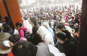 昨天“冷”的不僅僅是北京的天,研究生入學(xué)考試也遇到了少有的“降溫”現(xiàn)象。昨天,有120萬人參加了全國(guó)碩士研究生入學(xué)考試初試,這是自2001年以來,首次出現(xiàn)報(bào)名人數(shù)呈下降趨勢(shì)的一年,相較于去年的128.2萬,降幅達(dá)6.39%。共有21萬余人報(bào)考了2008年北京碩士研究生,這也比去年減少7127名,降幅為3.2%。雖然報(bào)考人數(shù)有所下降,但名校的競(jìng)爭(zhēng)則更加激烈。