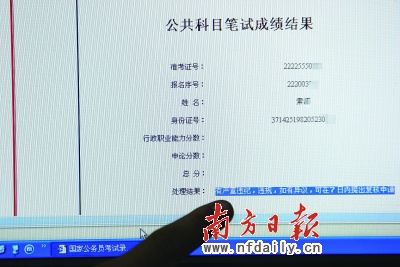 吉林某大學研一女生王藝的遭遇更具有黑色幽默。她說,報考去年的國家公務(wù)員考試她都沒有好好準備“有一半題都是蒙的,感覺A好就選A”。1月9日通過網(wǎng)上查分,“公共科目筆試成績結(jié)果”的網(wǎng)頁打開時她幾乎崩潰:“ 行政職業(yè)能力測試分數(shù)”得分為0,“處理結(jié)果:有嚴重違紀,違規(guī),如有異議,可在7日內(nèi)提出復(fù)核申請”。王藝哭笑不得。