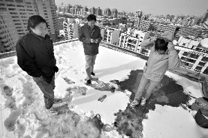 昨日上午,朝陽區華展國際公寓20余業主爬上C座15樓頂天臺“抗議”小區不供暖,要求相關部門立即解決小區供暖僵局。
