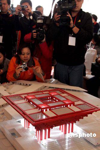 十二月十八日,凝聚全球華人智慧的中國二0一0年上海世博會中國館在上海黃浦江畔舉行開工典禮。據(jù)介紹,作為上海世博會的永久性場館之一,總用地面積為六點五二公頃,總預算十五億元人民幣。整個中國館區(qū)由國家館、地區(qū)館、港澳臺館等三個部分組成。中新社發(fā) 潘索菲 攝
