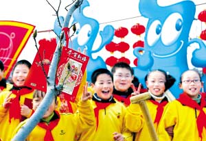 “2010年,請到中國來!”今天上午,寶山區和衷小學的學生們在白玉蘭樹上掛一張張世博心愿卡,與“海寶”一起喜迎世博。今天是元宵節,恰逢上海世博會開幕倒計時800天,寶山區炮臺灣濕地森林公園里彩旗招展、鑼鼓喧天,“迎世博紀念林”種下第一批白玉蘭。