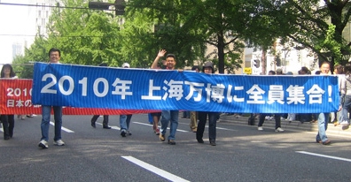 大阪參展2010年上海世博會(huì)城市最佳實(shí)踐區(qū)案例在2009御堂筋巡游活動(dòng)上打出了“在2010年上海世博會(huì)上全體集合”的橫幅
