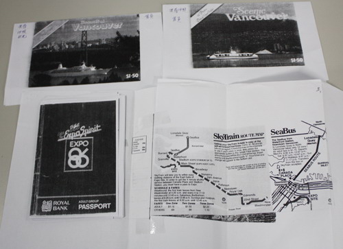 下面我分別談這兩件事的情況。當我抵加拿大溫哥華,哥哥們 一定要我去參觀舉世矚目的1986年溫哥華世博會(EXPO),親友們很快為我購買了精致的入場券。因為每次去用車載我參觀,一參觀一整天(從上午10點到下午9點),我只去過兩次,去幾個國家地區(qū),每到一個地區(qū)、國家可蓋紀念章。這張入場券像一本護照,做得很精致,同時各個地區(qū)、國家有種種介紹的冊子。我要來不少冊子,后來在搬家中丟失了。這本“護照”留地方蓋當日入場日期,并留了不少空白號蓋章用。我參觀了兩次(1986年5月26日及5月31日),我保存入場券上有蓋紀念章包括中國館、加拿大安大略省(法文地區(qū))、日本、馬來西亞、韓國、羅馬尼亞、加拿大、肯尼亞、澳大利亞、巴基斯坦等。我入場券號碼是0370014,首一頁是當?shù)厥组L(籌備館負責)歡迎詞,在第二頁上寫上自己的名字、地址及自己簽名,寫上三日護照(Three day passport)與皇家銀行(Royal Bank)合辦。并有一張1986年溫哥華EXPO導游圖,標出80個地區(qū)、國家所在。我還有保存兩本介紹溫哥華風景小冊子,每一本冊子包括14個風景區(qū),每本定價1.5元。