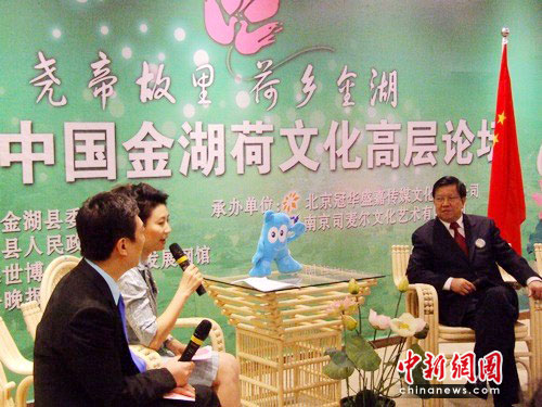 本屆論壇是第十屆中國金湖荷花•美食節的高端活動之一,借助世博會的平臺,讓荷文化作為金湖的形象大使,牽手世博,走向國際,發展金湖。論壇一改過去嘉賓輪流上臺發言的設計,采用央視訪談欄目的場景設計和節目流程,由央視名嘴陳偉鴻、王小丫現場主持。出席論壇的嘉賓們在主持人的引導下,聯系金湖發展和各自實際,圍繞“荷”氣生財論經濟、以“荷”為媒說規劃和政通人“荷”談民生三大論題進行現場訪談。