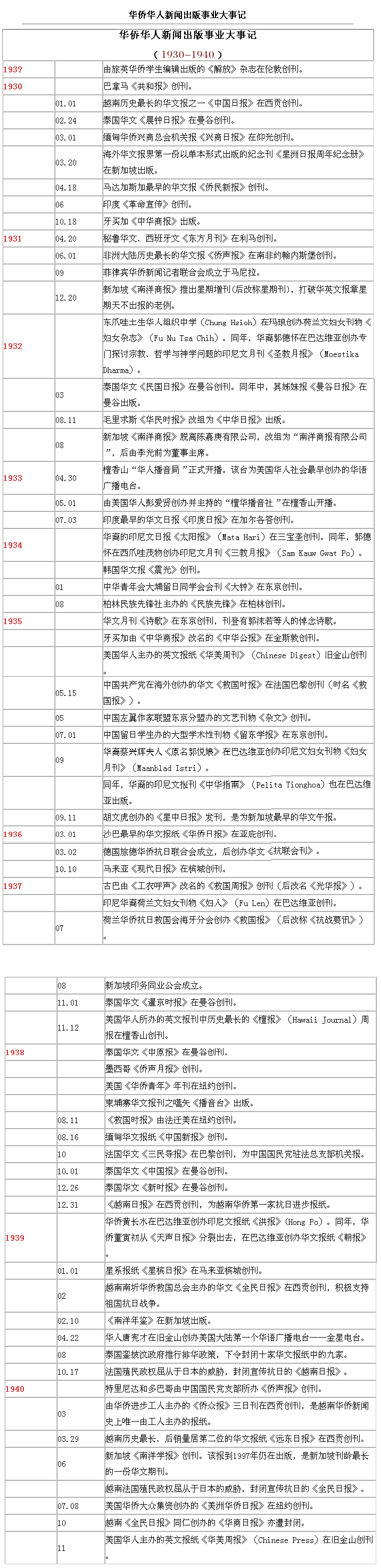 海外華文傳媒大事記