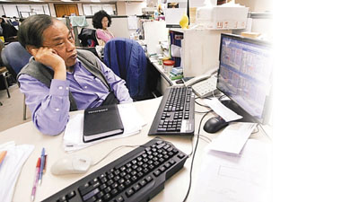 中新網(wǎng)1月24日電 香港股市狂挫后反彈讓中小股民飽食驚風(fēng)散,不少人23日一早涌到證券行和銀行,留意股市的最新走勢,日前的愁云慘霧似乎仍未被股市大升沖淡。有證券經(jīng)紀(jì)嘆氣說,股市大幅波動(dòng),升跌動(dòng)輒數(shù)千點(diǎn),猶如坐“超級(jí)過山車”,散戶短期內(nèi)既不敢沽貨又不敢入市,令其生意大跌六成。