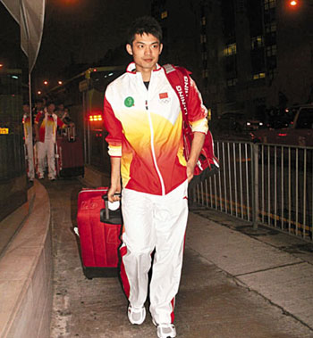 林丹步出機場時戴上口罩,對記者提出多個問題絕口不答,只和記者進行眼神交流而已,因為有特別通道他也率先坐上了旅游巴士,較其它隊友早了10分鐘。