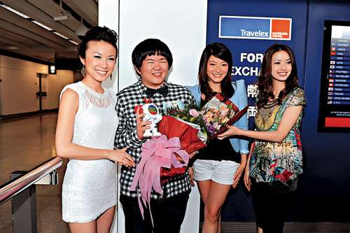 中新網(wǎng)5月6日電 憑《I Will Always Love You》一曲在國際爆紅,有“臺版蘇珊大嬸”之稱的小胖林育群,5日由臺灣來港展開五天宣傳之旅,無線特地派出應(yīng)屆三位港姐劉倩婷、熊穎詩及李姿敏到機(jī)場獻(xiàn)花給他,令小胖高興得一直在冒汗。對于外形備受批評,但小胖坦言發(fā)型、肚腩及領(lǐng)結(jié)都是他的標(biāo)志,所以無意減肥或整容,倒希望眼睛可以大一點(diǎn),因眼睛小戴隱形眼鏡有難度。