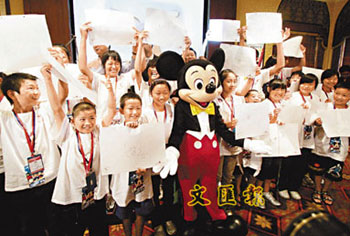 董沛今年9歲,是團(tuán)中年紀(jì)最小的團(tuán)友,來港短短兩日中,他最難忘的除了是見到樂園中的卡通人物,樂園酒店房間里的洗手間也讓他眼界大開。他興奮地說,“酒店洗手間美輪美奐,跟迪斯尼動(dòng)畫片一些場(chǎng)景是一樣的”。其后各人獲安排到樂園的動(dòng)畫藝術(shù)教室參觀,過程中董沛認(rèn)真學(xué)畫米奇老鼠頭像,“我們小學(xué)每天的課程不多,但是我最喜歡美術(shù)課”。