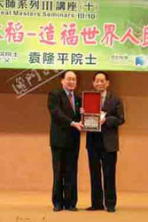 中新網(wǎng)12月3日電 被譽(yù)為“雜交水稻之父”的中國工程院院士、美國科學(xué)院外籍院士袁隆平日前在澳門科技大學(xué)D座會議廳作題為《發(fā)展雜交水稻、造福世界人民》的講座。許敖敖校長代表澳門科技大學(xué)全體師生向袁隆平致以由衷的感謝,并向他頒授榮譽(yù)敎授聘書。