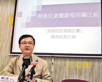 香港兒童健康疫苗關注組召集人賴仁彪批評,特區政府對“流感疫苗資助計劃”的宣傳不足,令疫苗接種率偏低。(圖片來源:文匯報)