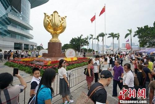 1997年7月1日,中華人民共和國香港特別行政區正式成立,當天早上8:30,前國家主席江澤民及前特區行政長官董建華,聯同特區主要官員、嘉賓和市民,在金紫荊廣場參與國旗區旗升旗儀式。自此,國旗及區旗每日早上8:00升起,傍晚6:00降下,吸引不少旅客和市民觀看。