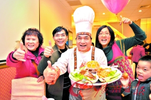 “各位貴賓,大家好,非常榮幸能在中華民族最重視的傳統佳節里,為大家準備臺灣地區傳統的‘圍爐’,現在我開始為大家上菜,這道菜里有鮑魚,還有醉蝦……”昨晚6時剛過,臺北“頂廚國宴”餐廳的廚藝總監黃德忠身著喜慶的廚師服,親自為廣之旅的四桌游客端上了年夜菜肴。