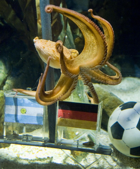 保羅已經成為傳奇動物,他準確預測了四場比賽。在小組賽德國對澳大利亞、加納的比賽中,保羅都選擇了德國,結果德國都勝了。而德國對塞爾維亞的比賽,保羅選擇了塞爾維亞,德國隊0:1負于塞爾維亞。在德國對陣英格蘭賽前,保羅只花了8秒鐘迅速選擇德國,結果德國4:1大勝英格蘭。四分之一決賽,德國隊將遭遇阿根廷隊,而保羅也是掙扎了一個小時才爬向德國。預示著德阿比賽必是一場漫長的激戰,但德國應該能安全勝出。