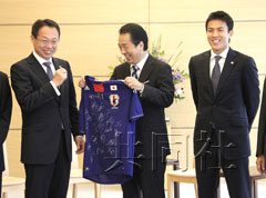 中新網7月6日電 據日本共同社網站報道,日本男足主帥岡田武史(53歲)及部分球員6日前往日本首相官邸拜訪首相菅直人。菅直人對日本男足給予了高度評價。
