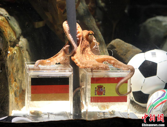 章魚“保羅”在英國出生,現在則是德國奧伯豪森一家海洋館里的一員。因為 “保羅”成功預測德國隊在半決賽中輸掉比賽,遭到很多德國球迷抱怨,德國當地一家報紙讓章魚“保羅”登上了頭條,并為它起了個新名字——“賣國賊”。