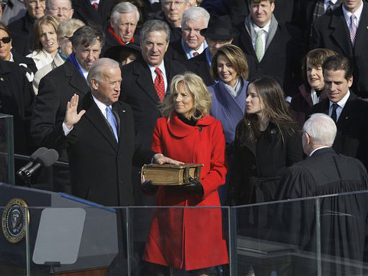 中新網(wǎng)1月21日電 當(dāng)?shù)貢r間1月20日上午11點56分(北京時間21日凌晨0點56分),美國第56屆總統(tǒng)就職典禮開始。在最高法院法官約翰.保羅.史蒂文斯陪同下,新一屆美國政府副總統(tǒng)拜登宣誓就職。