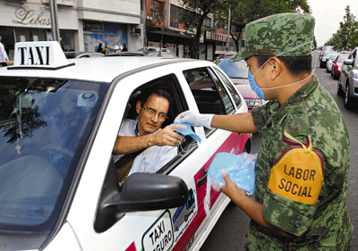墨西哥城前日起口罩銷情突然暢旺,口罩迅即賣清,衛生當局則派員到國際機場、地鐵站和巴士站派發口罩。墨城當局決定學校停課,610萬學生留家。市內一切由國家和市政府舉辦的文化活動暫停。