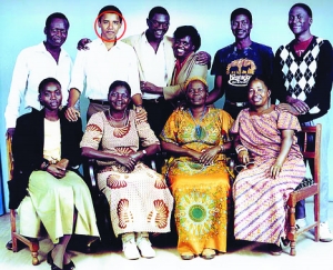 奧巴馬與繼母和繼祖母及繼兄弟姊妹的合照。