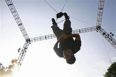 中新網(wǎng)9月25日電 魔術(shù)師戴維布萊恩24日在紐約完成倒吊六十個(gè)小時(shí)的嚴(yán)峻考驗(yàn),但是部分民眾抱怨這位幻術(shù)家模仿蝙蝠俠的企圖不過是個(gè)假象。