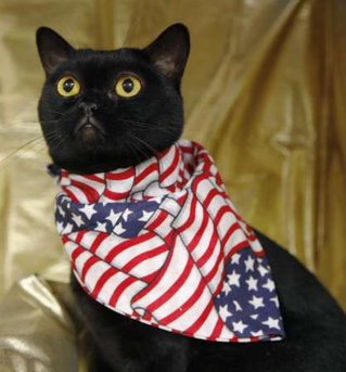 中新網10月20日電 綜合報道,由愛貓者協會發起的貓展日前在紐約麥迪遜廣場花園舉行,為配合美國總統大選,貓展還特設了一個環節:選出你認為最能代表民主黨或共和黨的貓,最后一只英國短毛貓當選為麥凱恩的候選“代言人”之一,而另一只名叫 “小黑豹”的孟買貓被命名為“奧巴馬”。