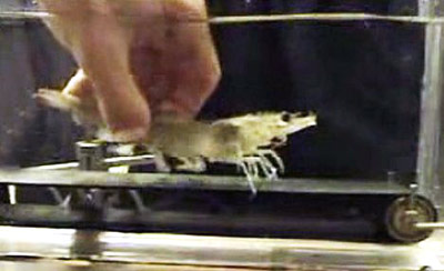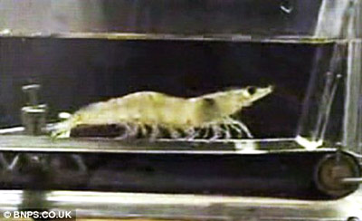美國科學(xué)家為了試驗蝦在尋找食物時可以游多遠(yuǎn),日前拍攝了一段喂養(yǎng)的蝦在跑步機上“跑步”的視頻,該視頻被上傳到Y(jié)outube上,這只神奇的小蝦現(xiàn)在成了互聯(lián)網(wǎng)上炙手可熱的“大人物”。