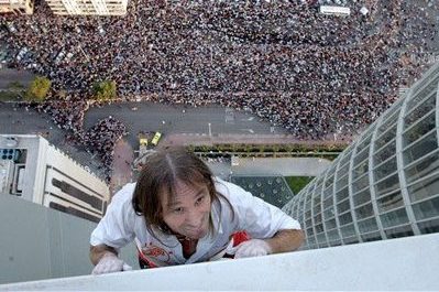 據悉,阿蘭•羅伯特身高1.65米,以徒手攀爬高樓而聞名世界,他也因此被稱為“蜘蛛人”。動漫和電影中的蜘蛛人有蛛絲做道具,而阿蘭•羅伯特比蜘蛛人更牛,因為他每次爬高樓外墻時,全程靠手,不用任何安全裝備。自1994年至今,他已經攀登了世界上七十多座高樓,是世界上攀樓最多的人,去年他成功爬上了420米高的上海金茂大廈。