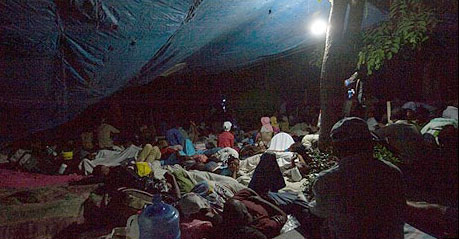 海地里氏七級強烈地震過后,數以萬計海地民眾連續兩個晚上露宿街頭。人道醫療組織無國界醫生表示,他們在當地設立的臨時診治點有大批傷者涌入,許多人傷勢嚴重。街道上尸橫遍野,一些遇難者無遮無擋地躺在地上。