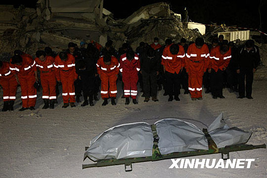 目前,救援隊正按照孟建柱的要求,爭分奪秒,竭盡全力搜救中國被埋人員。最新消息稱,中國國際救援隊已于海地當地時間16日凌晨3時30分發(fā)現第一具中方失蹤人員遺體。現場人員對這名遇難中國人舉行了默哀儀式。對其他幾名中國維和人員的搜救工作仍在進行中。