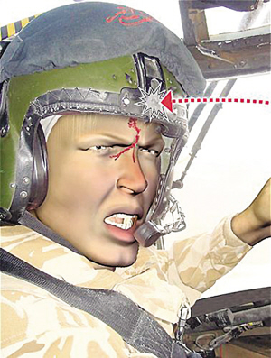 當(dāng)時(shí)塔利班分子的攻勢很激烈,直升機(jī)盤旋良久才逮到一個(gè)交火較少的機(jī)會(huì)降落下來,不過當(dāng)傷員陸續(xù)登上直升機(jī)時(shí),對(duì)手的襲擊又開始活躍起來。當(dāng)傷員接載完畢,伊恩冒著彈雨再起飛時(shí),一粒子彈剛巧擊中他的頭盔前部一塊用于安裝夜視鏡的金屬架,子彈從這里穿透了頭盔,射中他的眉心。鮮血從伊恩的額頭涌了出來,一直流到他的眼睛。此時(shí)更多的子彈射了進(jìn)來,支奴干的控制臺(tái)被擊中,穩(wěn)定系統(tǒng)無法工作。但伊恩仍然努力控制直升機(jī),繼續(xù)飛行了大約8分鐘,順利降落基地。空軍消息人士說,如果子彈射低一毫米,又欠缺這位機(jī)師的駕駛技術(shù),機(jī)上所有人相信無機(jī)會(huì)生還。