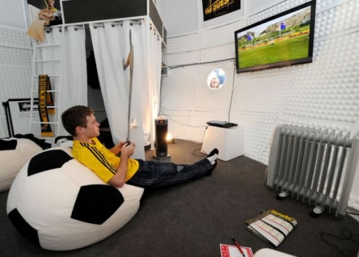 讓人羨慕的是,房間內(nèi)有一個(gè)裝滿(mǎn)了食物的冰箱、一臺(tái)計(jì)算機(jī)、一臺(tái)PS3游戲機(jī)、一張雙層床、一個(gè)吸塵器、免費(fèi)洗衣服務(wù)等。另外,還有專(zhuān)人幫亞當(dāng)桑塔羅薩打掃、洗衣服。不過(guò),他坦言,剛開(kāi)始的幾天遇到一些麻煩,那就是人們都很好奇,從足球的窗戶(hù)往里“偷窺”。