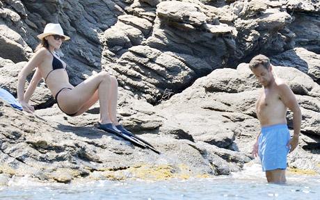 媒體拍到他們在海邊游泳的照片。這位注重身材的法國總統(tǒng)站在水中盡力收腹,健康問題看似已無大礙。布呂尼則戴著太陽帽和墨鏡,穿著黑色比基尼,大秀身材。他們并沒有進(jìn)行激烈的運(yùn)動(dòng),有記者只是看到他們在水中互相親吻。