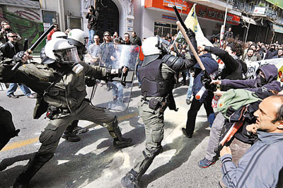 在市場及歐盟的壓力下,陷入債務危機的希臘政府不得不宣布采取更加嚴苛的措施,以換取歐盟支持。希臘政府本月初宣布削減公務員工資、增加消費稅和燃油稅等緊縮政策,預計整套方案將為政府增收節支四十八億歐元。該措施的實施在希臘國內引起反對黨以及民眾的強烈反對。在過去一個月時間里,希臘已發生多起罷工和抗議示威活動。