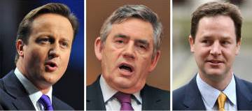工黨領袖、現任首相布朗,保守黨領袖卡梅倫和自民黨領袖克萊格回答了現場200多名觀眾和電視機前的觀眾通過電子郵件提出的問題。