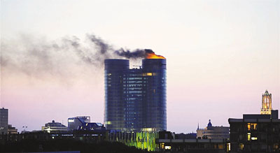 荷蘭最大零售銀行新建百層高樓總部發生火災(圖)