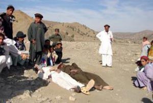 圖為2008年在米蘭沙阿慘遭塔利班槍決的部落男子。