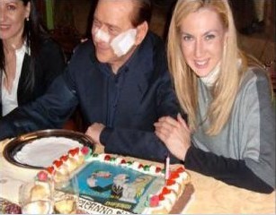中新網1月6日電 最近因遭到攻擊受傷支持率有所上升的意大利總理貝盧斯科尼雖然在家養傷,臉部還包著紗布的他也沒閑著,據臺灣“東森新聞網”援引英國《每日電訊報》報道,貝盧斯科尼日被媒體拍到笑容滿面地為曾與他傳出緋聞的美女議員慶祝生日,兩人在生日派對期間不但有說有笑,還不時有親密的肢體接觸。