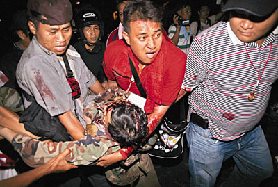 中新網(wǎng)5月14日電 據(jù)香港《文匯報(bào)》14日報(bào)道,泰國局勢再趨緊張,反政府紅衫軍拒絕結(jié)束示威,總理阿披實(shí)收回11月大選的和解提議。軍方昨(13日)晚出動(dòng)裝甲車狙擊手封鎖紅衫軍示威地點(diǎn),并截水截電,圖逼走示威者。紅衫軍營地之后傳出連串槍聲和至少4下爆炸聲,據(jù)報(bào)造成至少1死20傷,其中支持紅衫軍的陸軍少將卡迪亞頭部中槍昏迷。當(dāng)局宣布擴(kuò)大在中部和東北部17個(gè)府實(shí)施緊急事態(tài)法。