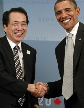 中新網6月28日電 據日本共同社網站報道,日本首相菅直人當地時間27日晚在加拿大多倫多同美國總統奧巴馬舉行首次會談時稱“進一步深化日美同盟顯得很重要”,向奧巴馬表示將切實履行將沖繩縣駐日美軍普天間機場搬遷至該縣名護市邊野古岬及接鄰水域的日美聯合聲明。