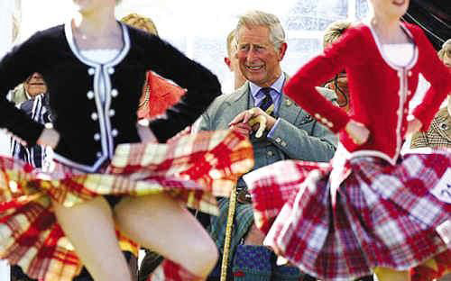 報道稱,日前查爾斯首次在妻子卡米拉陪同下,到蘇格蘭北部高地出席貴族競技賽;顒由,有女舞蹈演員起舞助興,舞動時揚起了蘇格蘭裙露出黑色內(nèi)褲和美腿,查爾斯看見后,一邊微笑一邊緊盯。