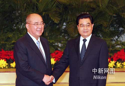五月二十八日下午,中共中央總書記胡錦濤在北京人民大會堂會見中國國民黨主席吳伯雄一行。 廖文靜 攝