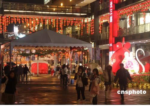 為營造春節的歡慶氣氛,臺灣許多商業區都做了精心的裝飾。圖為臺北新光三越的廣場前中國傳統的大紅燈籠高高掛。